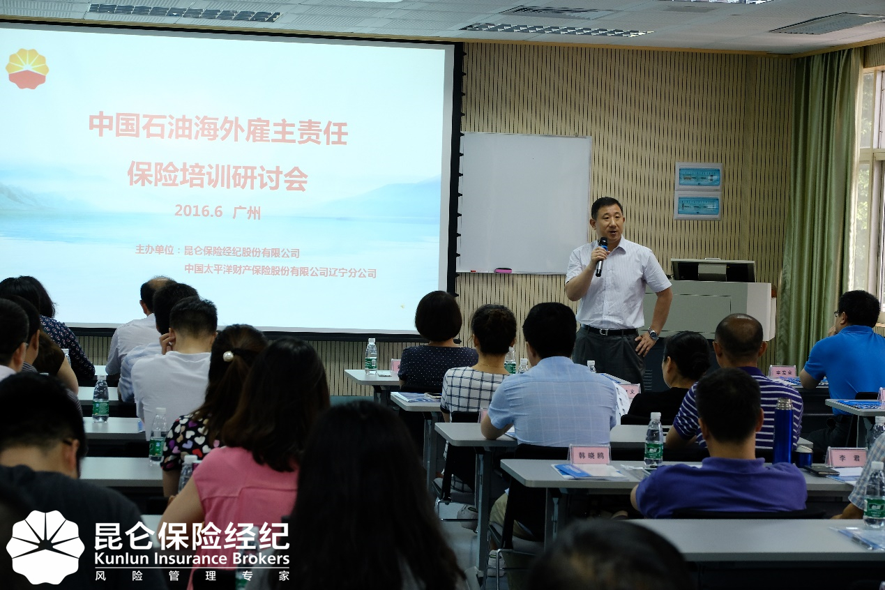 为加强地区公司对海外雇主责任险的理解,提高对海外风险防范的认知,增强海外人员的风险保障,公司于6月13-14日在广东省广州市召开了2016年度中石油海外雇主责任保险培训研讨会。会议邀请涉及海外业务的19家地区公司38位代表参会,集团公司资金部金融管理处副处长金莉莉、昆仑保险经纪总经理张国臣、太平洋财险辽宁分公司副总经理谷海威出席了会议。